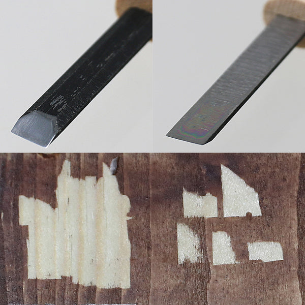 ・The blade is made of professionally forged Japanese carbon steel (Blue Paper Steel No. 2), with a high hardness over HRC60, allowing smooth wood carving with light force.
