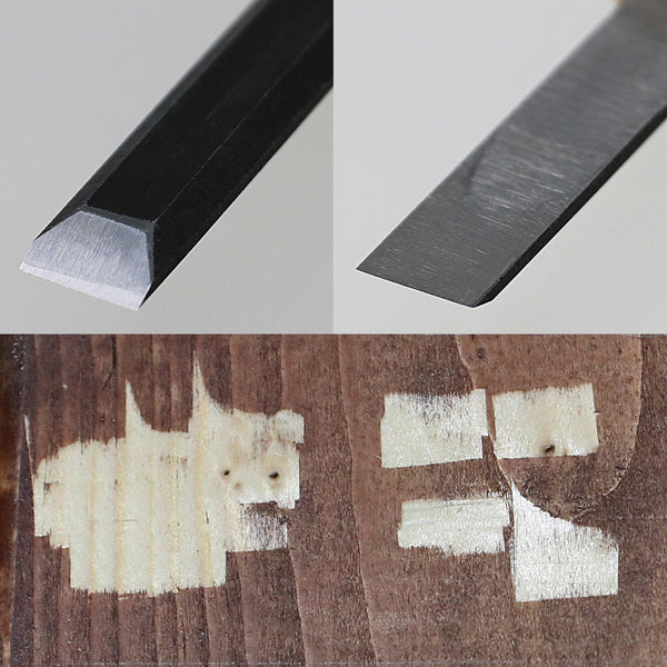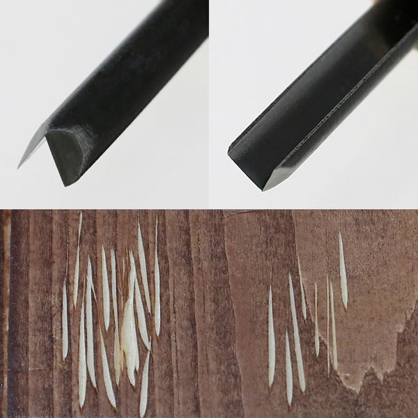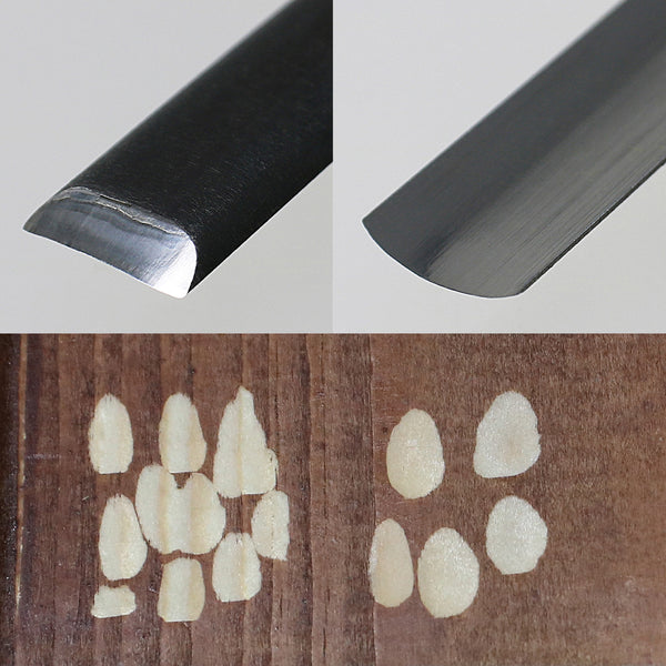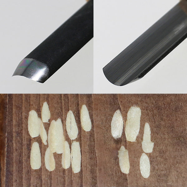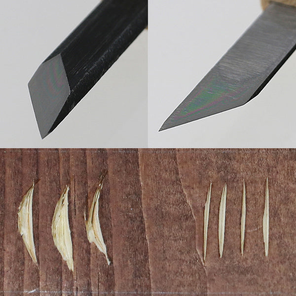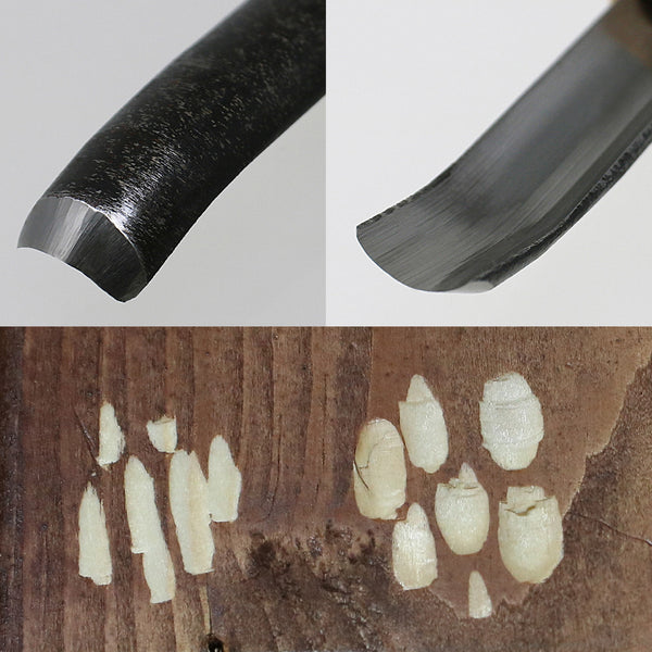 The blade is made of professionally forged Japanese carbon steel (AOGAMI Blue Paper No. 2), with a high hardness over HRC60, allowing smooth wood carving with light force.