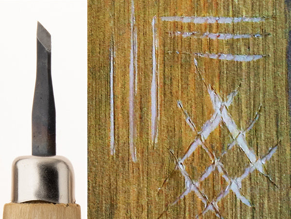 Japanese carbon steel blade cuts wood smoothly and precisely. Ideal for fine carving and precision cutting.