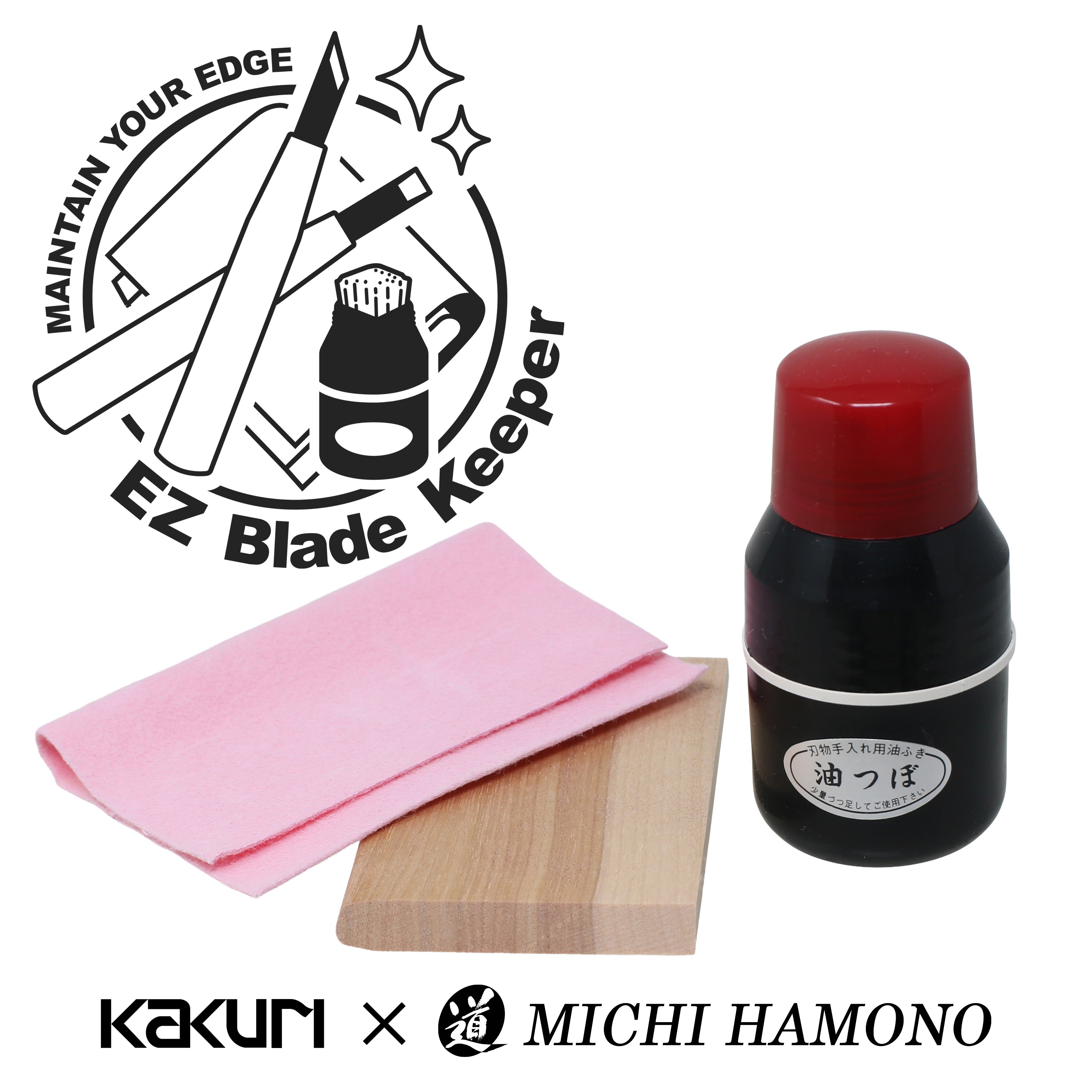 The EZ-Blade Keeper is a blade-maintenance kit jointly developed by KAKURI and MICHIHAMONO, two Japanese manufacturers deeply rooted in traditional edged-tool craftsmanship.