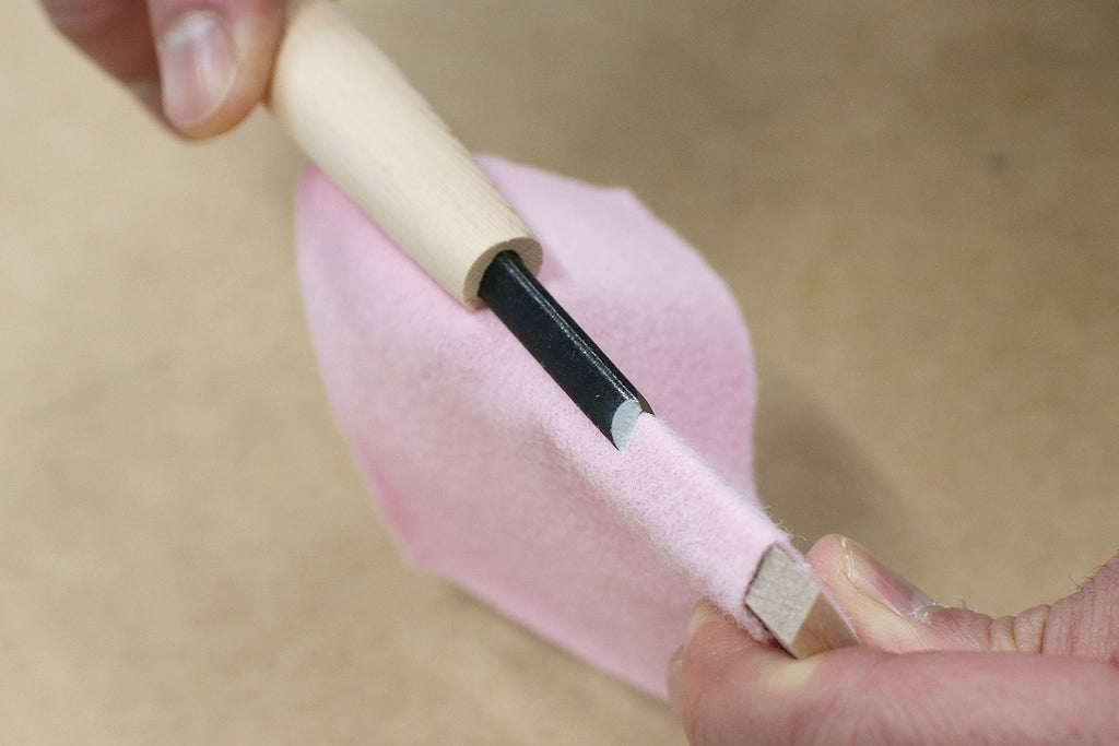 The wood plate provides a gentle, stable base that helps the sharpening cloth follow the exact shape of your blade.
